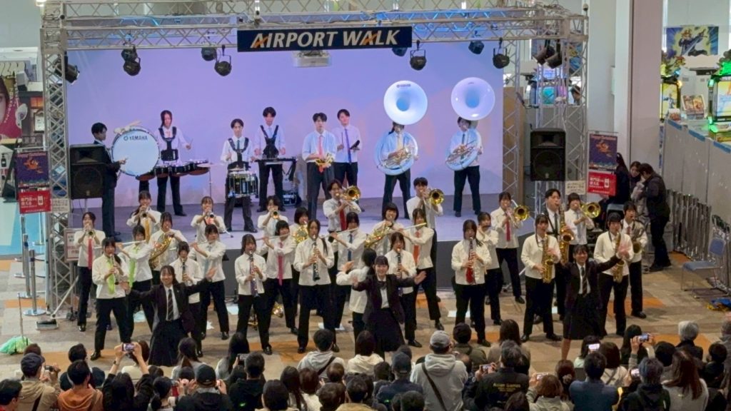 お知らせ/部活 吹奏楽部 11月16日AM「空の日」イベントに出演しました 2025年11月25日 11月16日(日)に行われました「県営名古屋空港『空の日』フェスタ2025」におきまして、オープニングイベントに出演させていただきました。 会場のエアポートウォーク名古屋3Fイベントステージ前には、各地からの物産展もあり、開店直後にもかかわらず、たくさんのお客様を前に、アンコールを含め8曲を演奏させていただきました。